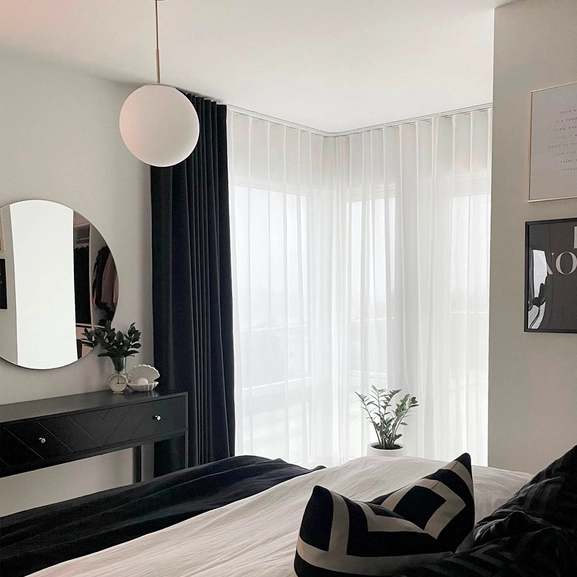 En elegant gardin i följsamt tyg som ger ett fint fall och skapar en ombonad atmosfär i rummet. Tyget är rumsförmörkande utan mörkläggningsskikt och minskar ljusinsläppet avsevärt – idealisk i sovrummet för en stillsam miljö eller i vardagsrummet när du vill få en behagligt dämpad känsla.