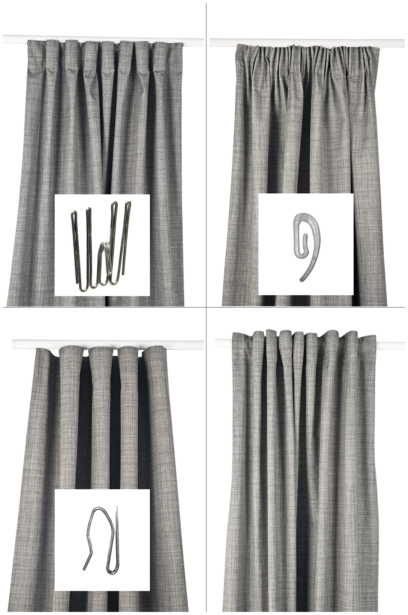 Finns även i matchande kudde. Gardinen har Hastas multigardinband, vilket betyder att du kan sätta upp gardinen på 4 olika sätt. Direkt på stången i hällor, med rynkband (köp till rynkbandskrok), fyrfingerkrok eller wave-upphängning (köp till nålkrok).