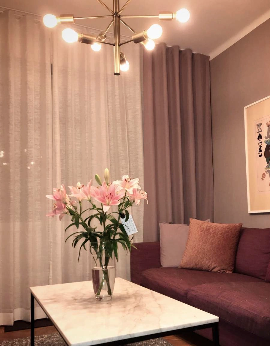 Kraftig gardin med linnestruktur som blir extra fin när ljuset skiner genom gardinen.