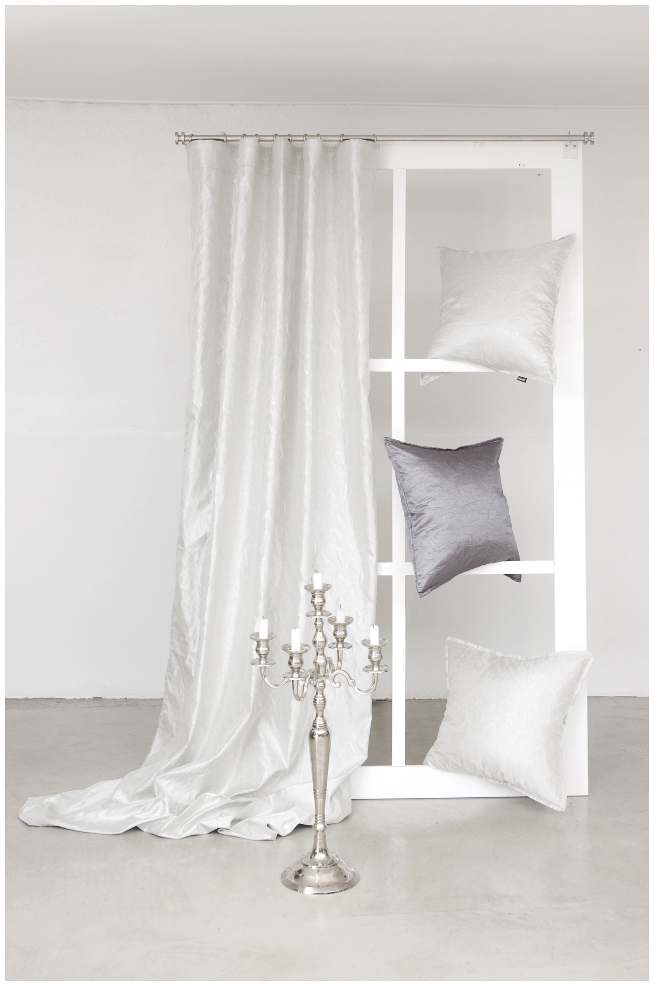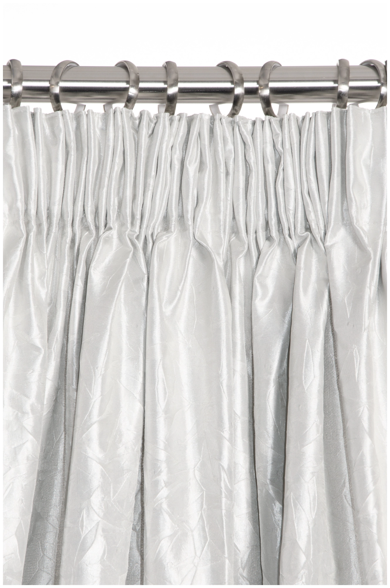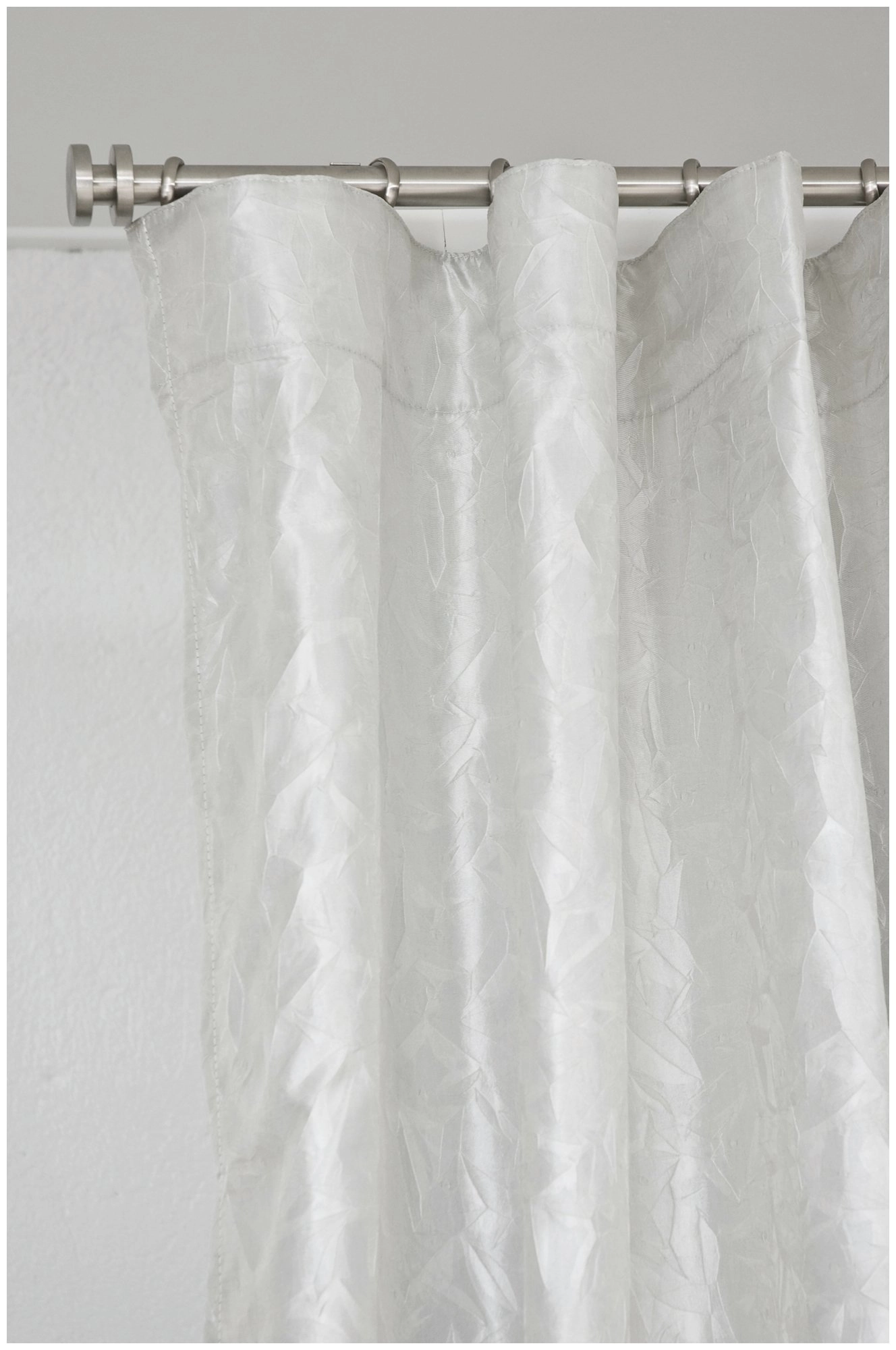 Prisma är en gardin i glansigt material med en skrynklig effekt. Svart foder på baksidan gör att gardinen dämpar ljuset bra. Prisma är därför en lämplig gardin i sovrummet eller tv-rummet där du vill dämpa ljuset.