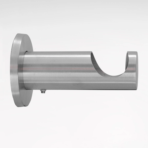 Väggfäste Point i rostfritt stål eller svart. Fästet är 8 cm och passar för gardinstänger med diametern 11/13 eller 26/28 mm.